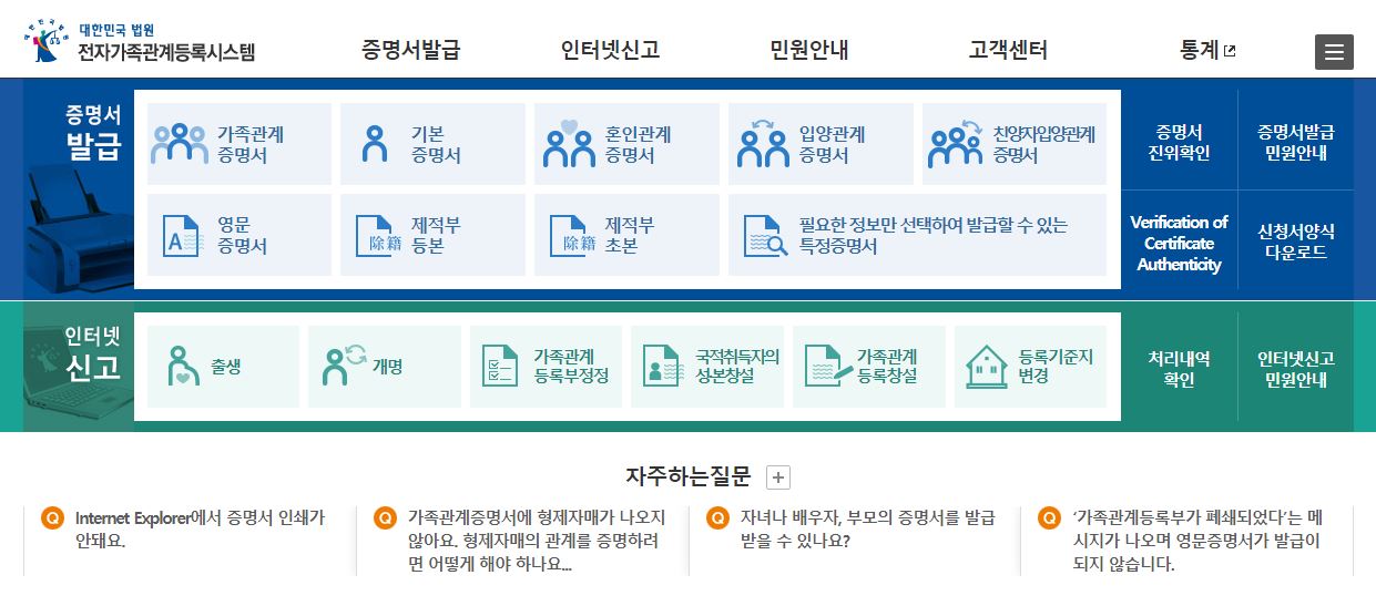 가족관계증명서 인터넷 발급을 위해서는 먼저 대한민국 법원 전자 가족관계 등록시스템에 접속하셔야 합니다.