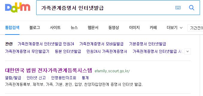 포털사이트에서 가족관계증명서 인터넷 발급이라고 치시면 대한민국 법원 전자 가족관계 등록시스템 홈페이지가 제일 위에 뜨니까요, 클릭해서 접속해 주세요.