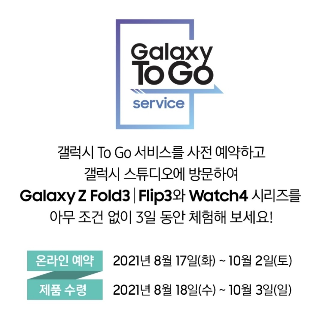 내 폰처럼 어디서든, 내 맘대로 3일 동안 갤럭시 To Go 서비스로 갤럭시 폴더블을 체험하세요