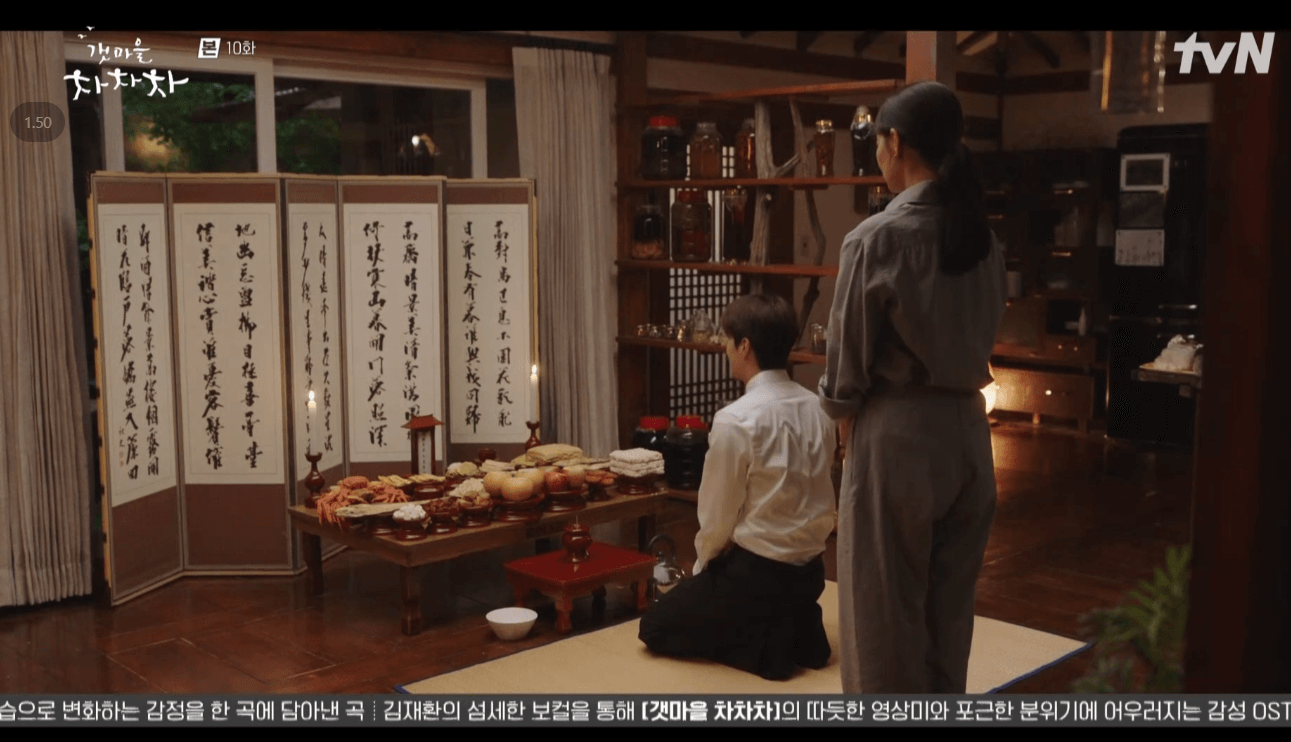 윤혜진은 홍두식이 제사상을 차리는 것도 도와주고 같이 있어주었어요. 여화정이 가져온 전만 그릇에 담는 윤혜진을 보고는 윤혜진이 사온 전도 할아버지가 좋아했던 거라며 같이 올리는 사려 깊은 홍두식이었죠.