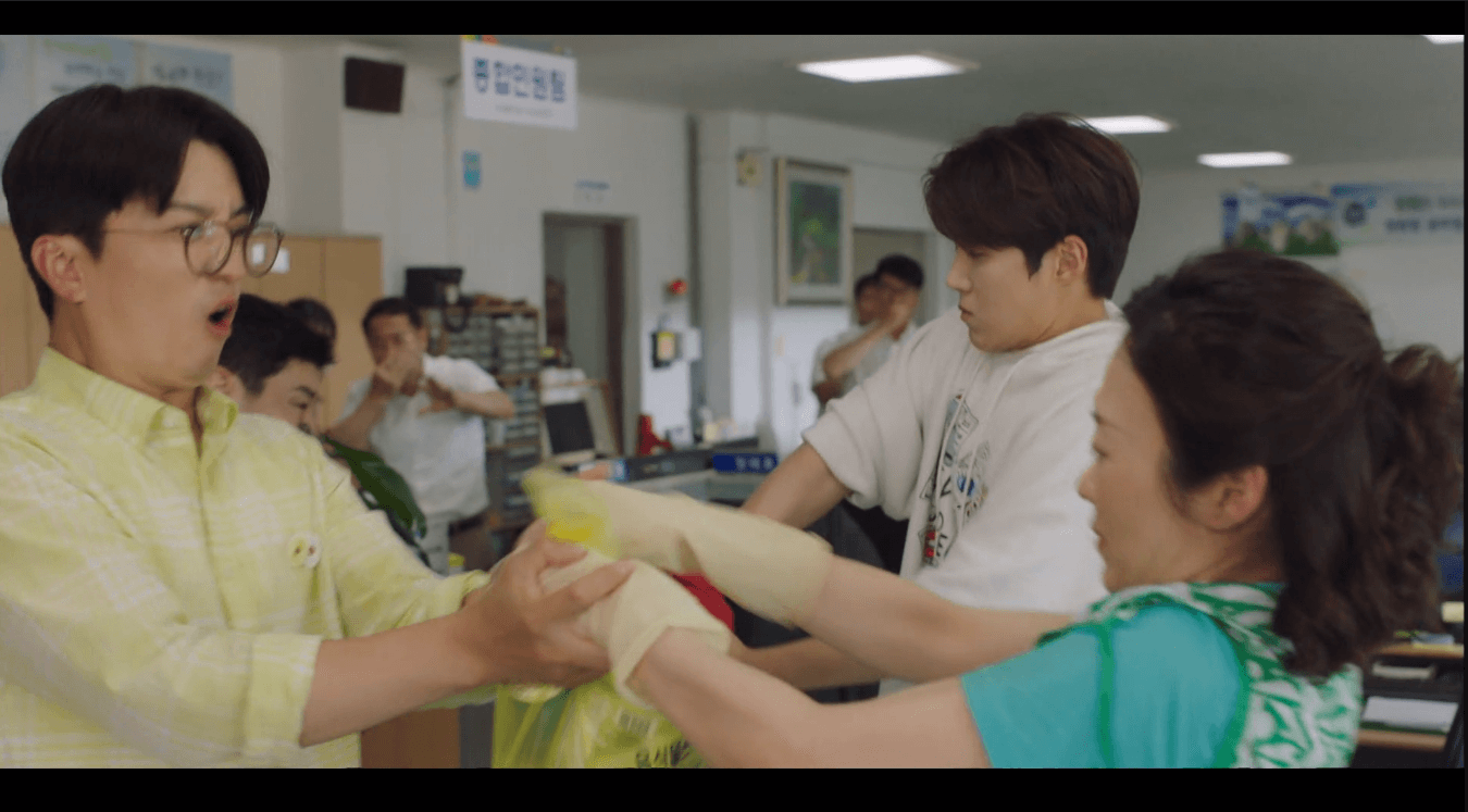 통장인 여화정과 홍두식은 쓰레기 무단 투기범을 잡아야겠다며 일부러 동사무소에 가서 무단 투기범이 버린 쓰레기를 열어보려 합니다. CCTV를 설치해달라고 요청했는데 번번이 무시당했기 때문이죠. 통장 여화정과 동장 장영국, 전 부부 사이인 두 사람은 힘겨루기를 했습니다. 결국 여화정은 CCTV를 달아주겠다는 확답을 받고서야 자리를 뜹니다.