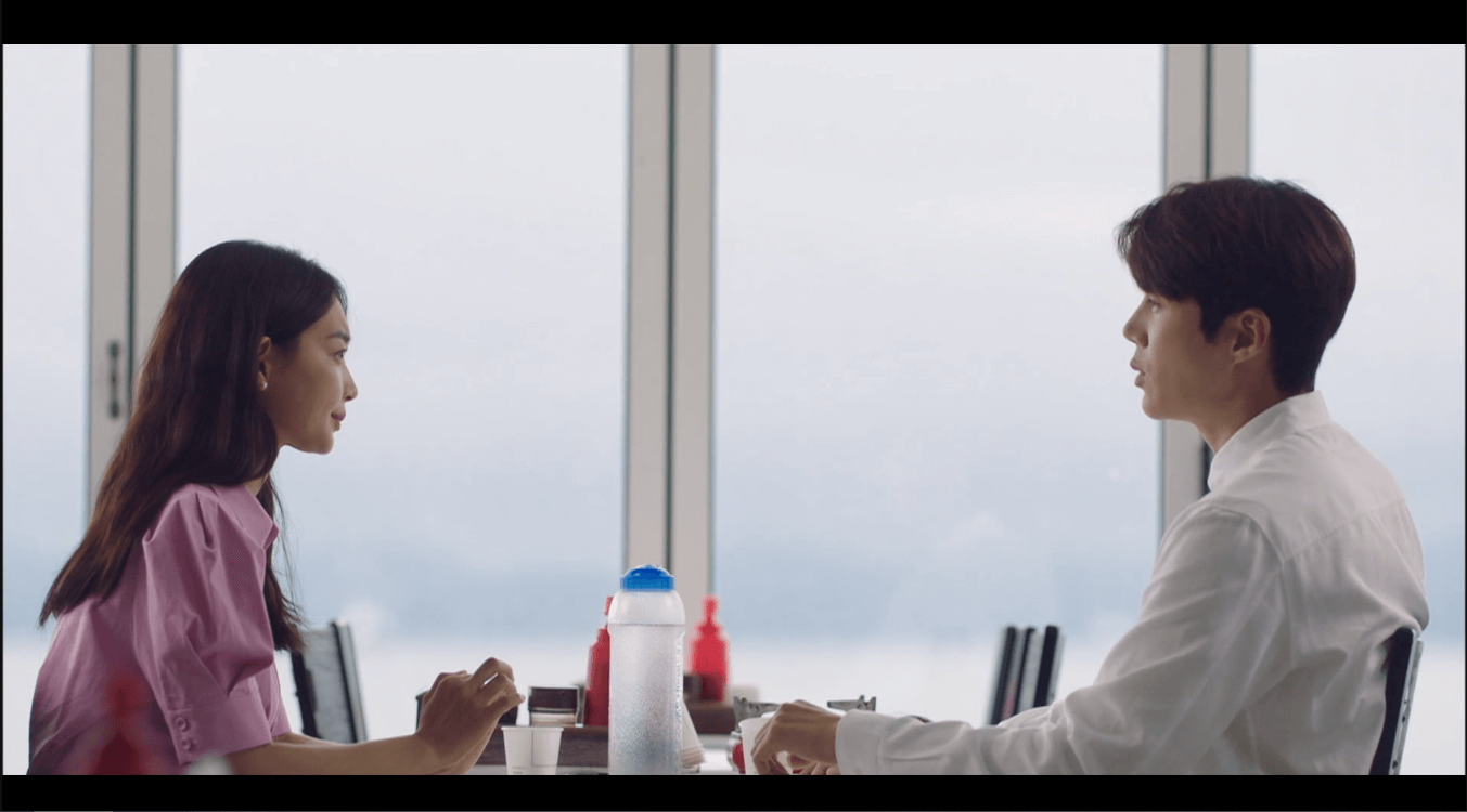 해장국을 먹은 뒤 해장 커피를 먹자는 홍두식에게 윤혜진은 혹시 자기를 좋아하냐고 했어요. 홍두식은 어제 술 먹자고 한 것도 해장국 먹자던 것도 윤혜진이라며 어이없어합니다.
