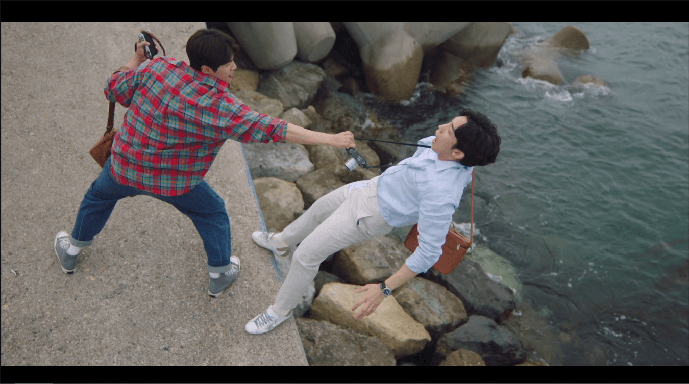 지성현은 공진에 답사를 나와 있는 것 같았어요. 바다에 빠질뻔한 지성현을 홍두식이 건져줍니다. 두 사람은 사진이라는 관심사로 금세 이야기꽃을 피우게 됩니다.