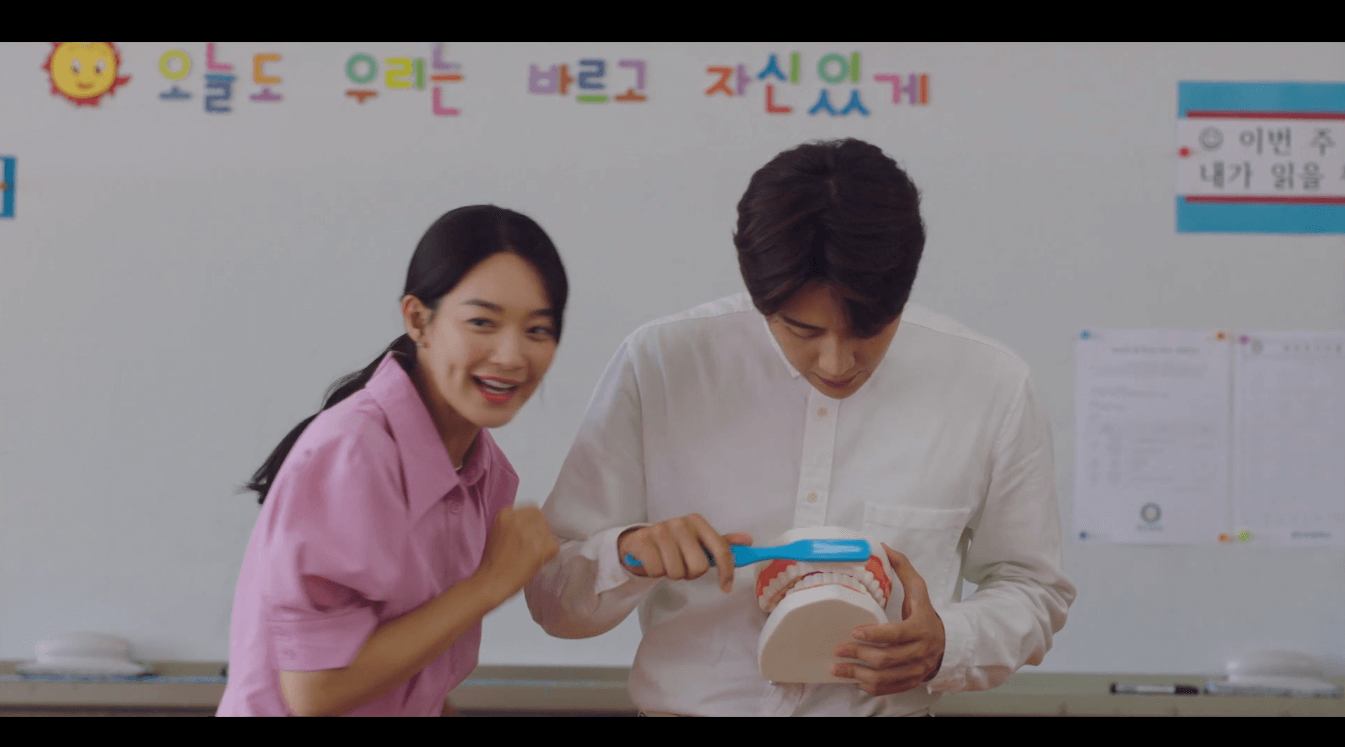윤혜진은 공진초등학교에 치아 교육을 가게 되었어요. 갑자기 배가 아프다는 표미선 때문에 홍두식과 파트너가 되었죠. 둘이 사귀냐는 아이들의 질문에 난처해하는 두 사람이었습니다.