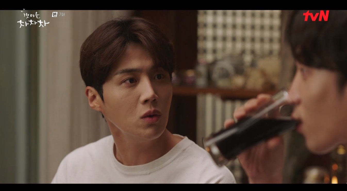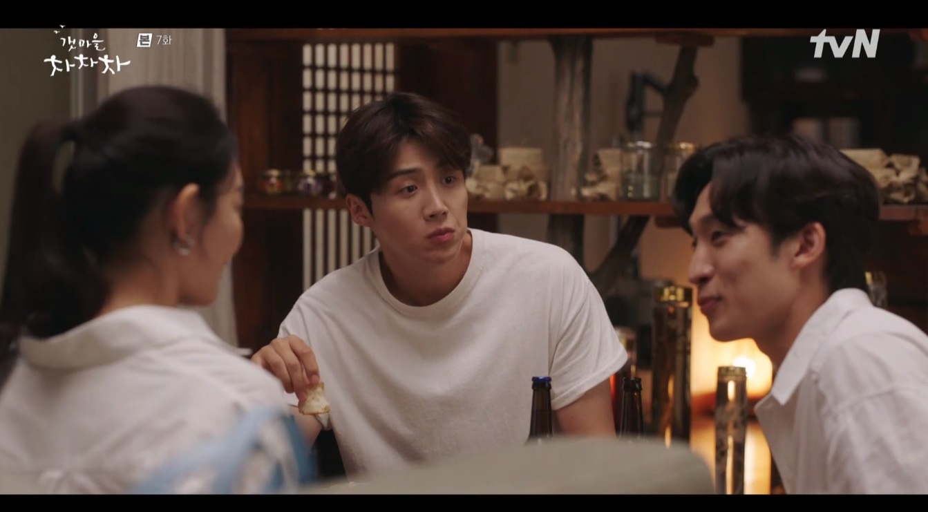 홍두식은 지성현에게 윤혜진을 데려다주고 둘이 한 잔 하자고 제안합니다. 윤혜진은 자기도 같이 먹겠다고 하죠. 그렇게 세 사람은 홍두식의 집에서 같이 술을 마시게 됩니다.