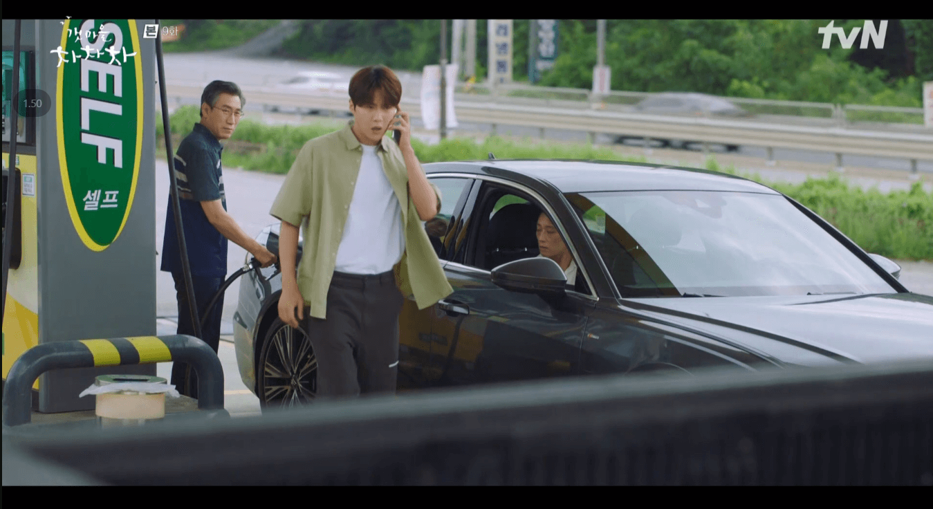 윤혜진의 부모님이 공진에 오셨나봅니다. 셀프 주유소에서 헤매는 윤혜진의 아버지를 홍두식이 도와드리죠. 젊은 친구가 싹싹하게 잘 도와준다고 생각할 줄 알았더니, 윤혜진 아버지는 와이프가 저 친구가 아까 반말하지 않았냐며 탐탁지 않아하는 모습이었습니다.