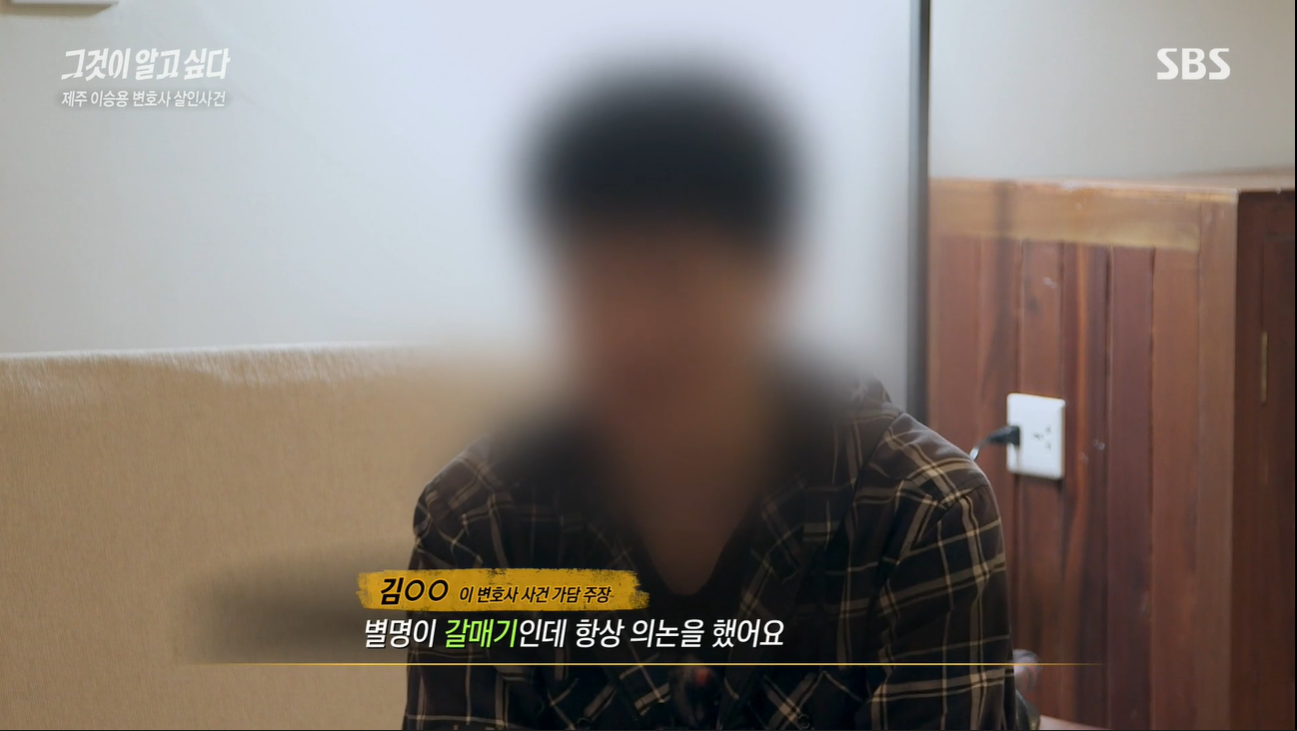 그리고 김씨에 따르면 갈매기가 그 살인사건을 범했다고 했습니다. 원래는 겁만 주려고 했는데 이변호사가 갈매기의 멱살을 잡으며 강하게 저항을 했고 결국 살인을 하게 되었다고 했다고 했어요.