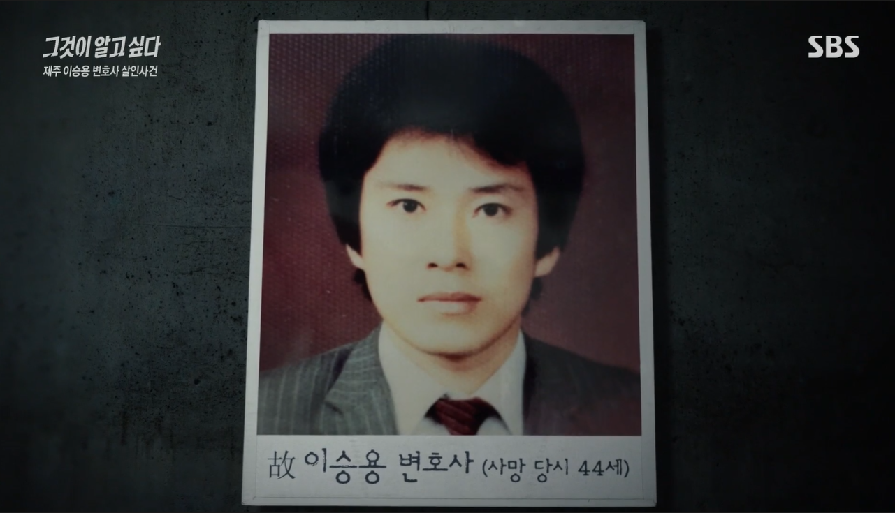 오늘 그것이 알고싶다 1278회는 故이승용 변호사의 이야기가 다루어졌습니다. 제주에서 태어나 1982년 사법시험에 합격해 검사가 되었습니다. 그리고 1990년 법복을 벗고 2년 뒤 고향 제주로 돌아가 변호사 사무실을 열었죠.