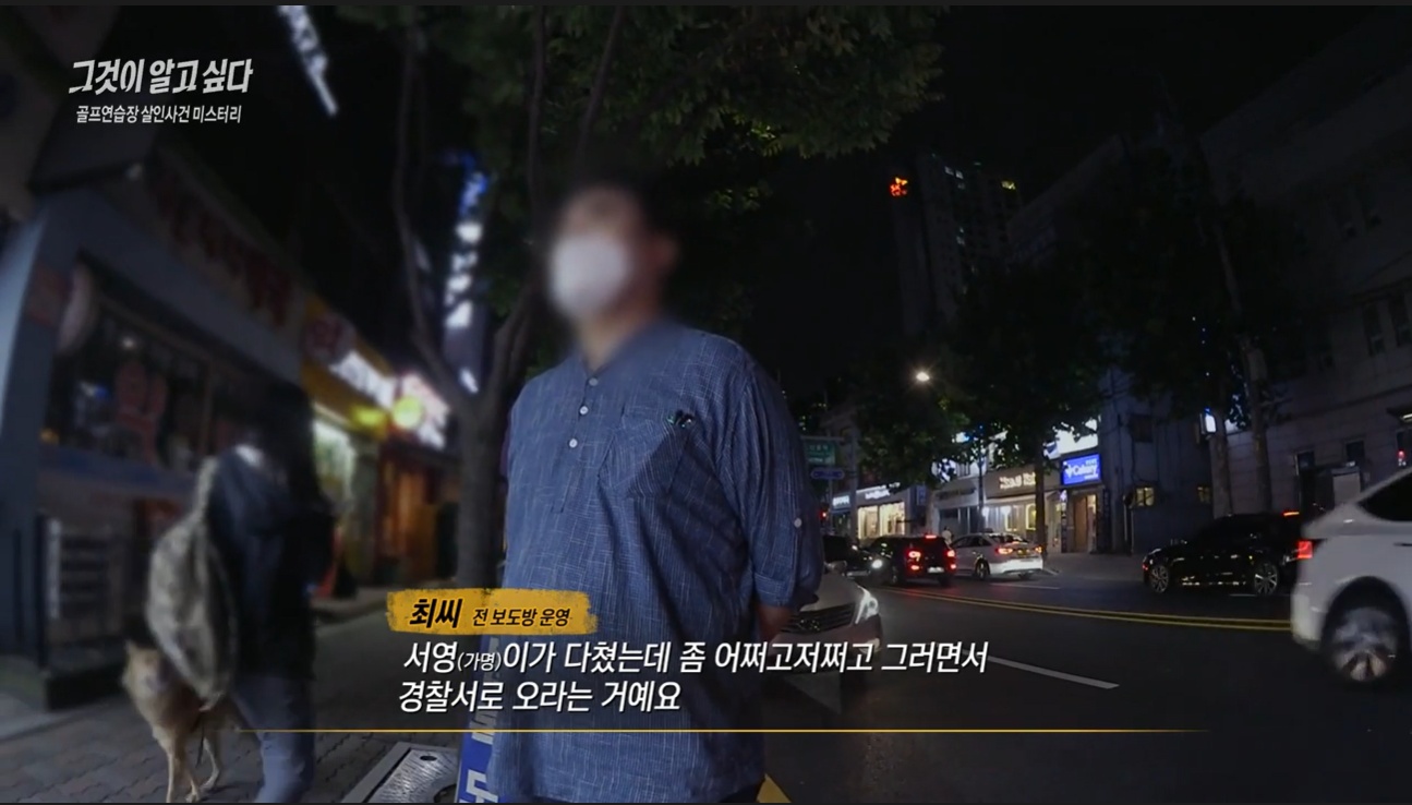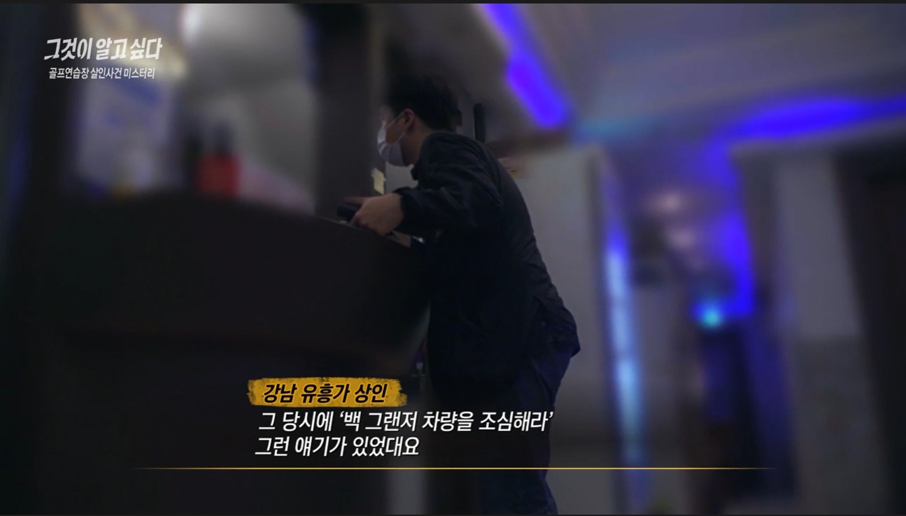 그런데 살인이 일어났던 당시 골프연습장에 목격자가 있었다고 합니다. 목격자 권씨는 보일러 공사 때문에 우연히 차에서 잠을 자고 있었다고 해요. 그러다 사람이 폭행당하는 소리에 잠을 깼고 한 여자가 여러 남자들에게 무참히 폭행을 당하는 모습을 목격했다고 했습니다. 본인도 무서워 차 안에 숨어있을 수밖에 없었다고 했죠.