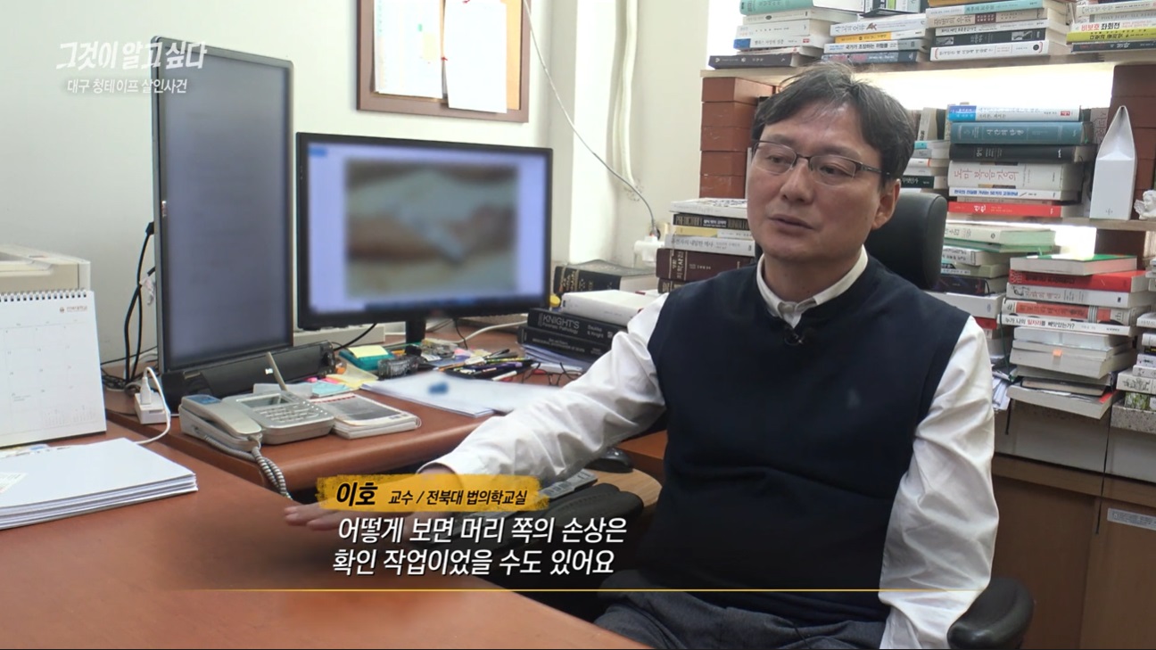 해석이 달라진 것은 또 있었어요. 22년 전에는 돌, 즉 수석으로 머리를 가격당해 사망했을 것이라고 판단을 했는데 전문가의 의견으로는 살아있을 때 만약 머리를 가격당해 그 이유로 죽었다면 더 많은 출혈이 있었어야 하고, 머리뼈 골절에 대한 이야기도 있었어야한다고 했죠. 따라서 사망한 뒤에 확인 작업으로 돌을 사용하였을 것이라고 했습니다. 오히려 목에 남아있었던 흔적들을 봤을 때 경부 압박 질식사였을 가능성이 더 높다고 했죠.