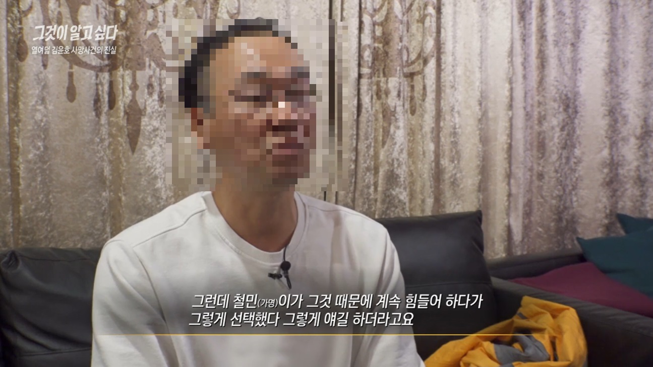 그것이 알고싶다 팀에서는 해당 시설에 대해 좀 더 알아보았어요. 그런데 충격적인 소식이 있었어요. 해당 시설을 운영하던 강목사의 큰아들이 윤호 사건 10일 이후 극단적인 선택을 했다는 것이었죠. 강목사 아들의 지인은 강목사의 아들이 자기의 잘못이 아니어도 죄의식을 갖는 성격이었다고 했어요.