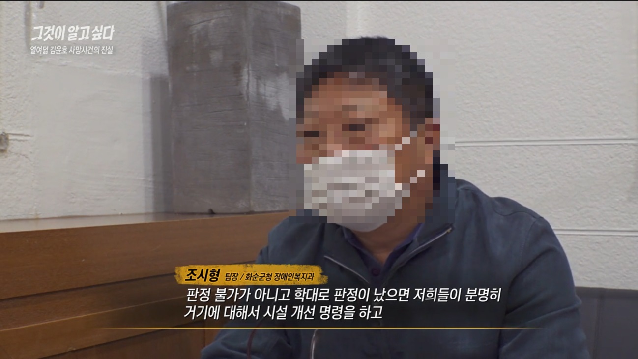 해당 시설은 학대 의혹으로 조사를 받았던 적이 있었다고 했어요. 입소자들은 학대에 대해 증언을 했다가 번복하기도 했었다고 했죠. 조사 끝에 결과는 판정 불가였다고 했어요. 그에 따라 군청에서나 복지부에서 별다른 조치가 이루어지지 않았던 것이었어요.