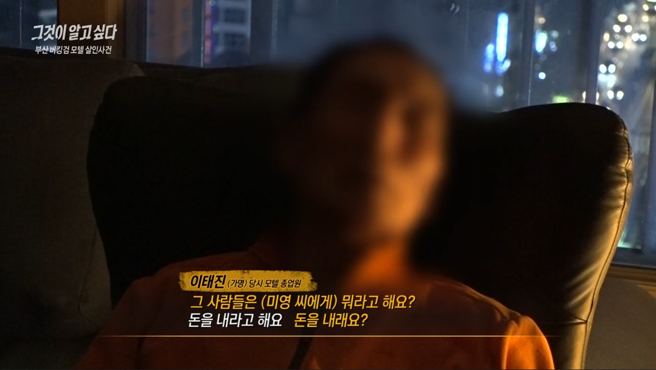 당시 모텔 종업원은 당시 수상한 사람들이 미영씨를 찾아왔었다고 했어요. 너무 오래되어 기억이 나지 않는다 하여 최면을 진행했고, 종업원은 이상한 교회 사람들이 자주 미영씨를 찾아와 돈을 내라고 요구를 했었다고 했어요. 그 중에는 젊은 남자도 있었다고 했죠. 그리고 미영씨는 남자친구가 생긴 듯 평소와는 조금 다른 행동도 했었다고 했어요. 와야 하는 시간에 오지 않기도 했고 화장을 진하게 하기도 했었다고 했죠.