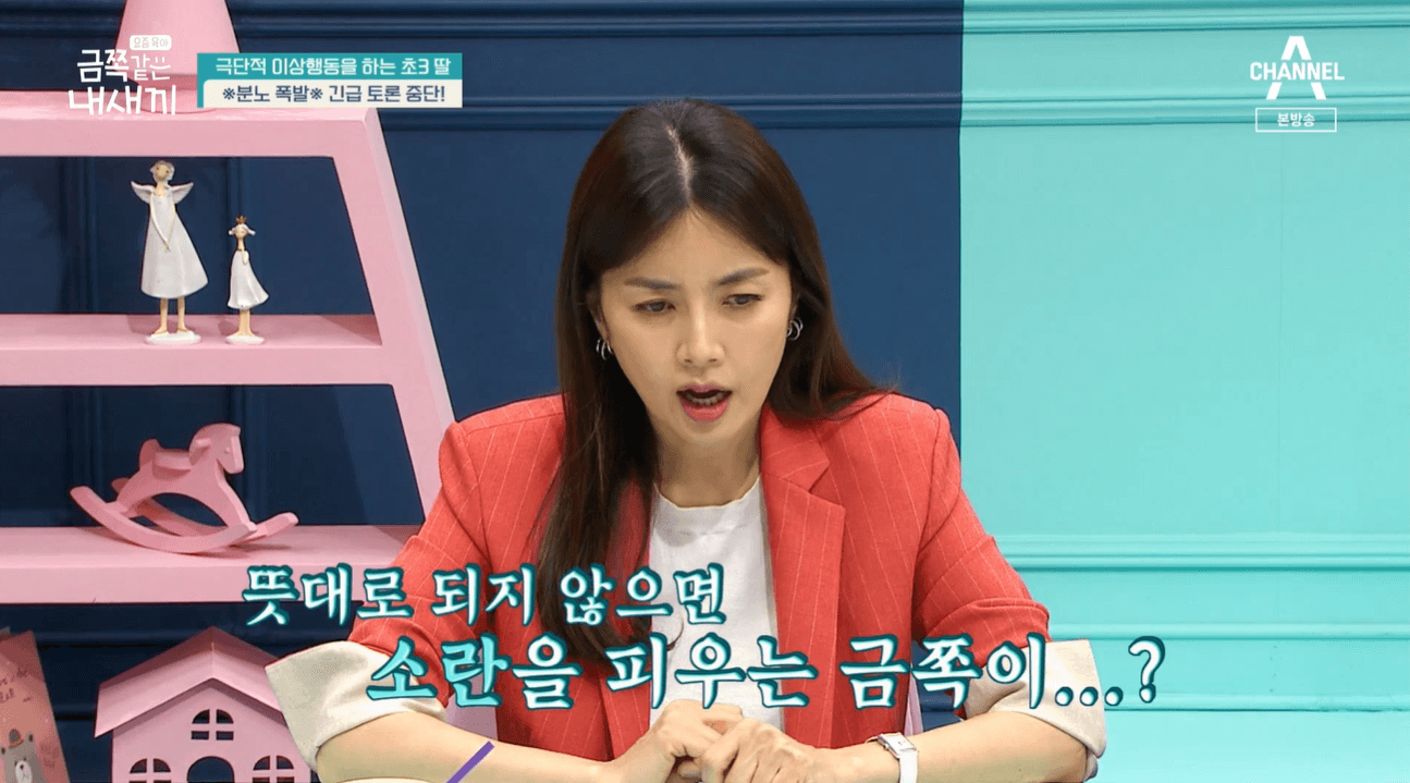 하지만 이내 금쪽이의 다른 모습이 보여졌어요. 토론 주제를 정하는 과정에서 자신이 원하는 대로 되지 않자 발을 동동 구리며 소리를 질렀죠. 본인의 뜻대로 되지 않으면 소란을 피우는 모습의 금쪽이 였습니다. 그랬다가도 다시 차분해지는 금쪽이. 감정의 널뛰기가 심해 보였습니다.
