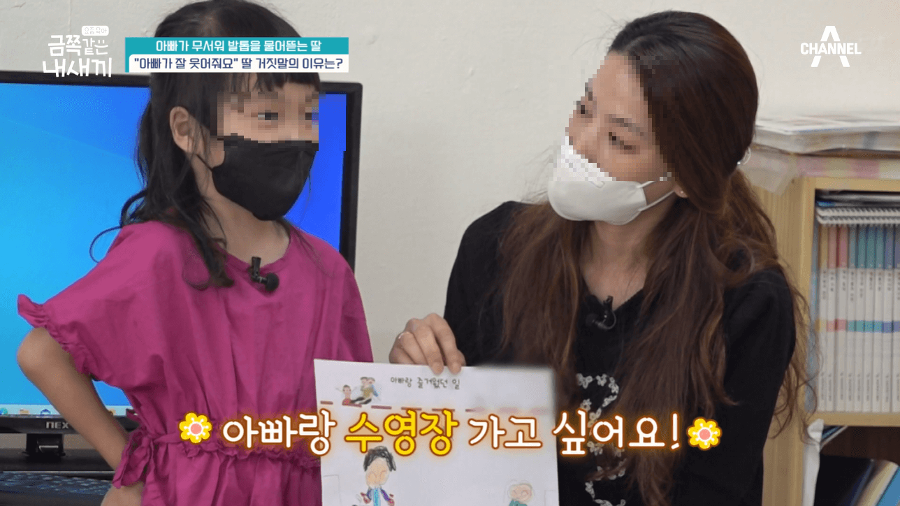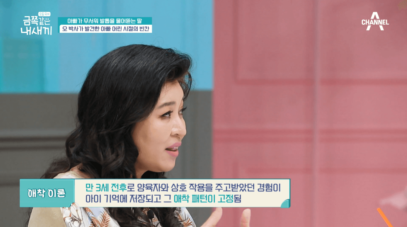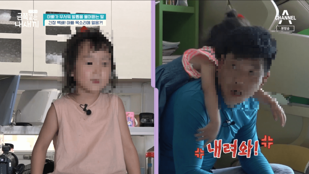 아빠가 말을 걸면 얼음을 하고는 아빠에게 다가가지도 못하고 말을 하지도 못하는 금쪽이가 된다고 했어요. 부녀 사이가 굉장히 어색한 것 같았습니다.