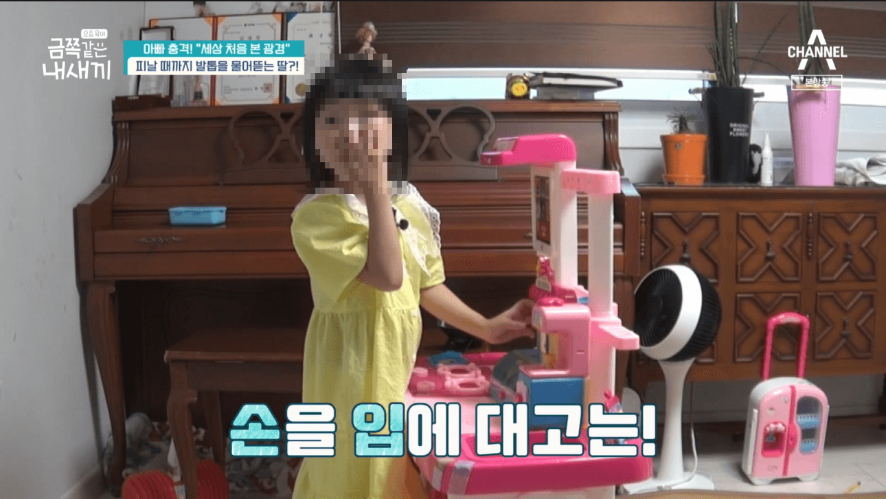 아빠가 부르자 금방 애착인형을 끌어안고 손가락을 빨던 금쪽이. 그것이 금쪽이에게는 마음의 긴장감을 낮추는 방법 이었습니다.