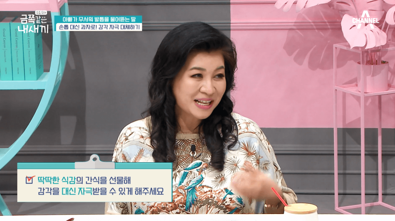 따라서 금쪽이에게 손가락을 빨지 말라, 뜯지 말라 하는 것은 의미가 없다고 했어요. 그것보다 선행된 내적인 긴장감을 유발하는 것을 제거해주거나 방법을 바꿔야 한다고 했습니다.