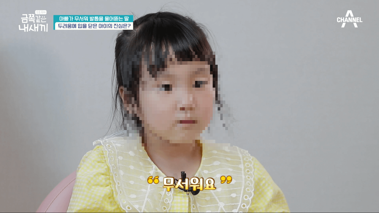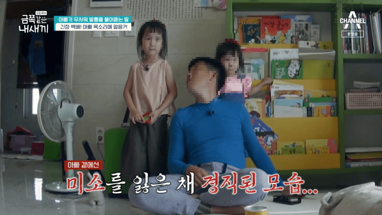 아빠가 말을 걸면 얼음을 하고는 아빠에게 다가가지도 못하고 말을 하지도 못하는 금쪽이가 된다고 했어요. 부녀 사이가 굉장히 어색한 것 같았습니다.
