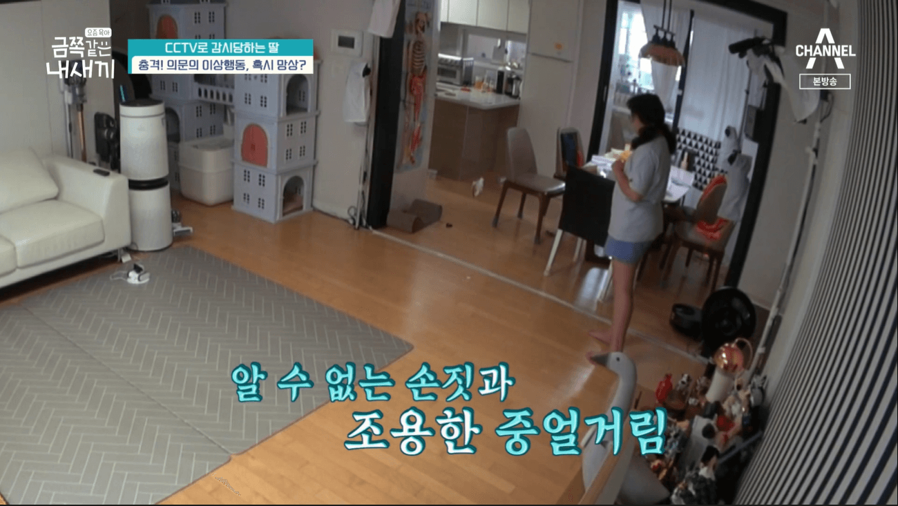 CCTV를 통해 금쪽이를 계속 감시하는 엄마. 금쪽이를 계속 지켜보며 지시하는 모습 이었습니다.