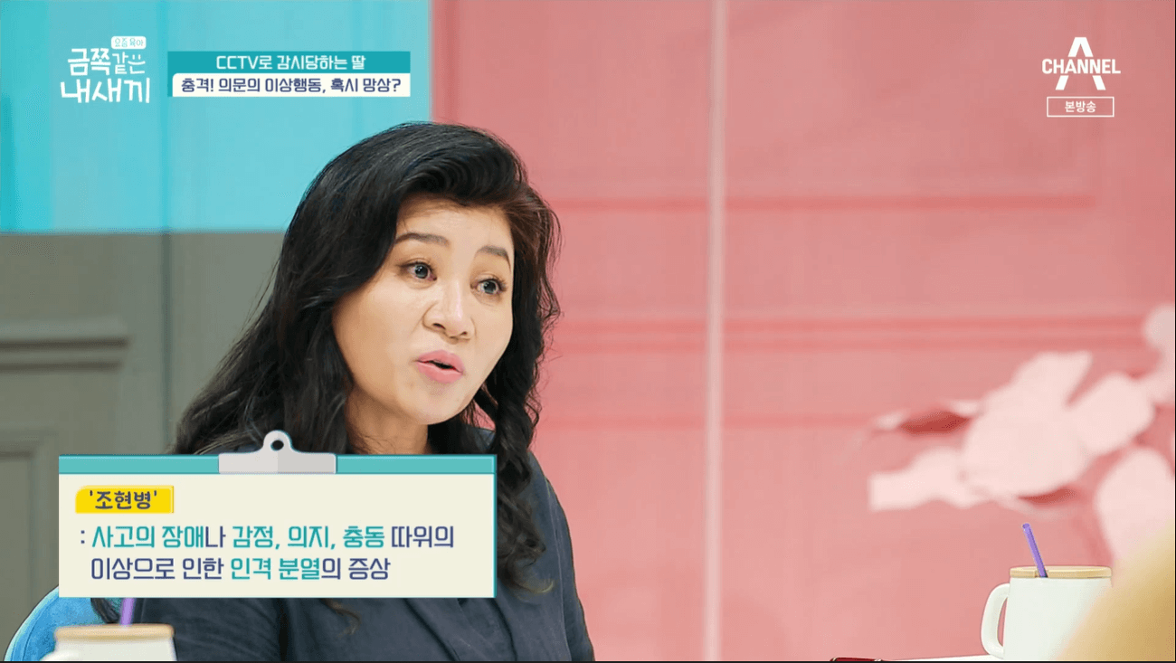 정형돈님은 부모 입장에서 상상속의 친구인지, 환시를 보는 것인지 구별하기 힘들 것 같다고 했어요. 오은영 박사는 조현병 이라는 개념을 설명 해 주었어요. 조현병은 사고의 장애나 감정, 의지, 충동 따위의 이상으로 인한 인격 분열 증상이라고 하는데요, 가끔가다 아동에게도 이런 조현병이 나타날 수 있다고 했어요. 하지만 만약 조현병이 있는 경우 일상생활에 많은 문제가 생길 수밖에 없다고 했어요.