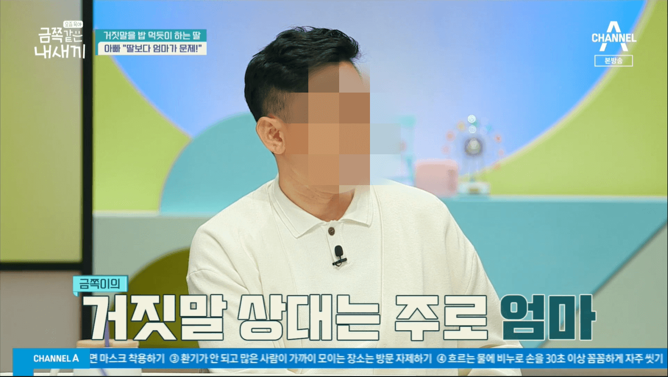 아빠는 금쪽이가 본인의 능력보다 요구되는 학습량이 너무 많아 거짓말을 할 수밖에 없는 상황인 것 같다고 했어요. 공부 양을 줄이면 거짓말이 줄어들 것 같다는 아빠. 금쪽이의 거짓말이 역시 엄마 때문이라고 생각하는 것 같았습니다. 또 요즘 애들은 다 하는 정도의 거짓말이라고 생각해서 금쪽같은 내새끼에 출연할 정도는 아닌 것 같다고 했죠.