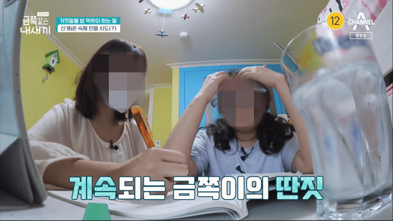 선생님과 엄마의 면담 시간. 금쪽이는 숙제를 하기 싫어서 풀어야 했던 페이지를 풀로 붙여버렸다고 했어요. 풀로 붙여서 한 번에 두 장이 넘어가게 해 버린 것이었죠. 이전에는 책을 찢어버린 적도 있다고 했죠.