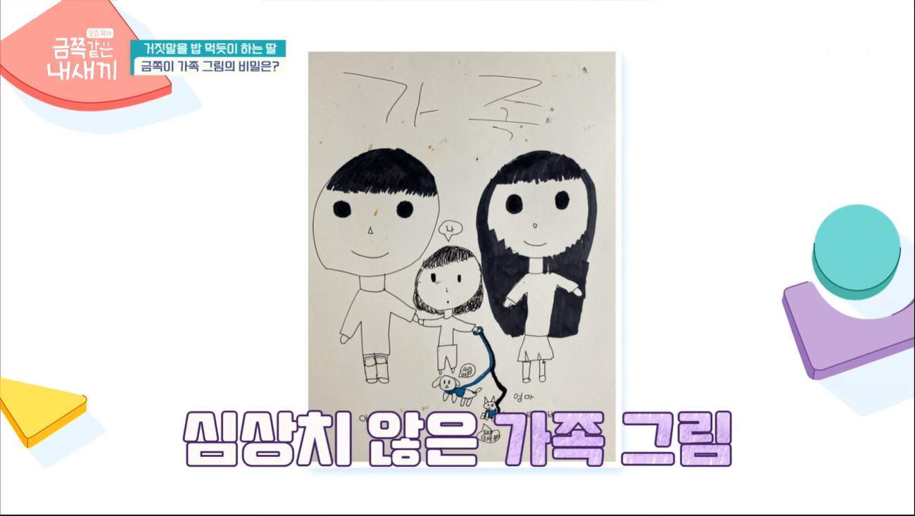 또 금쪽이는 아빠와는 손을 잡고 있지만 엄마와는 손을 잡고 있지 않는 모습이었고, 엄마 아빠는 웃고있지만 금쪽이의 표정은 홀로 웃고 있지 않은 모습이었어요.