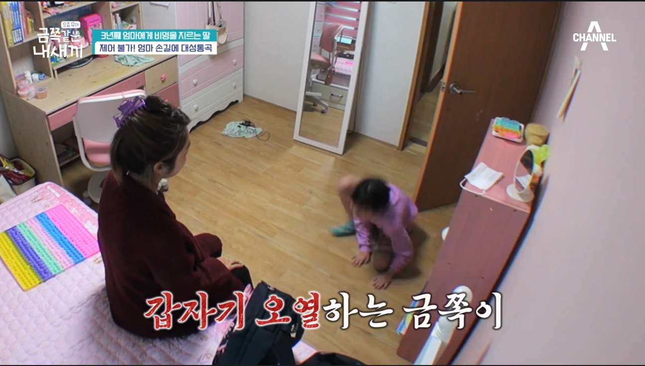 엄마가 만지는 것이 왜 싫냐고 차분하고 묻는 물음에도 그저 싫다며 악을 쓰는 금쪽이. 엄마의 손길조차 거부하며 엄마로부터 벗어나려고 하는 모습이었습니다. 엄마는 익숙한듯 자리를 뜰 수밖에 없었습니다.