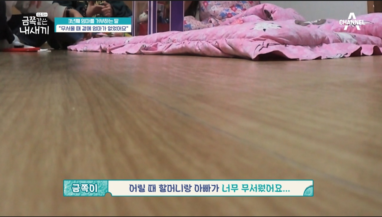 금쪽이의 속마음을 듣는 시간. 금쪽이는 마음을 보여주지 않았어요. 카메라가 거의 다 철수되었을 때 금쪽이가 제작진과 나눈 대화가 포착이 되었어요. 금쪽이는 어릴 때 할머니와 아빠가 너무 무서웠다고 했어요. 그런데 그 때 엄마는 곁에 없었다고 했죠. 그래서 속상했다는 금쪽이였습니다.
