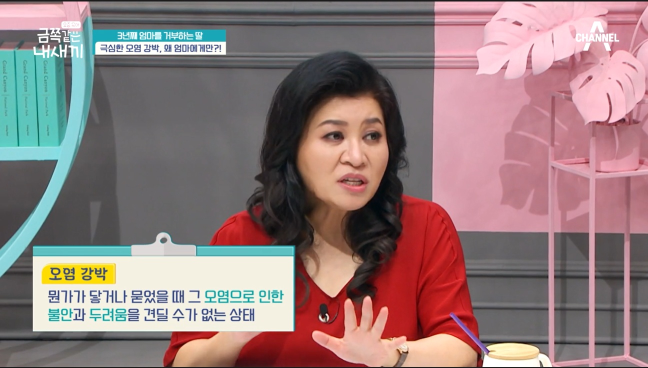 오은영 박사는 금쪽이가 오염 강박이라고 했어요. 오염 강박은 뭔가가 닿거나 묻었을 때 그 오염으로 인한 불안과 두려움을 견딜 수가 없는 상태라고 했죠. 불안장애 중에서도 강박증, 강박증 중에서도 오염에 대한 강박 이라고 했습니다.