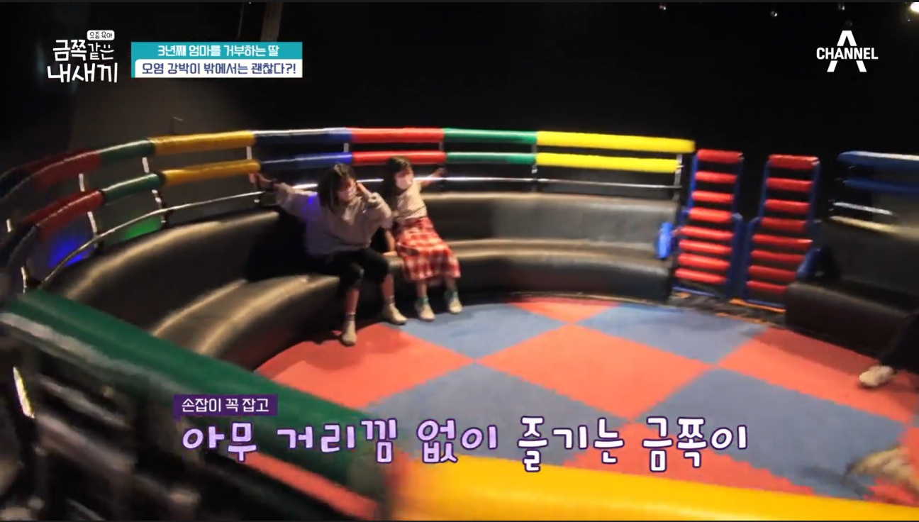 그런데 오염 강박이라는 금쪽이가 밖에서는 다른 모습이었어요. 친구의 손도 꼭 잡고 걸었고 디스코 팡팡을 타러 가서는 손잡이도 꼭 잡고 거리낌 없이 즐기는 모습이었죠.