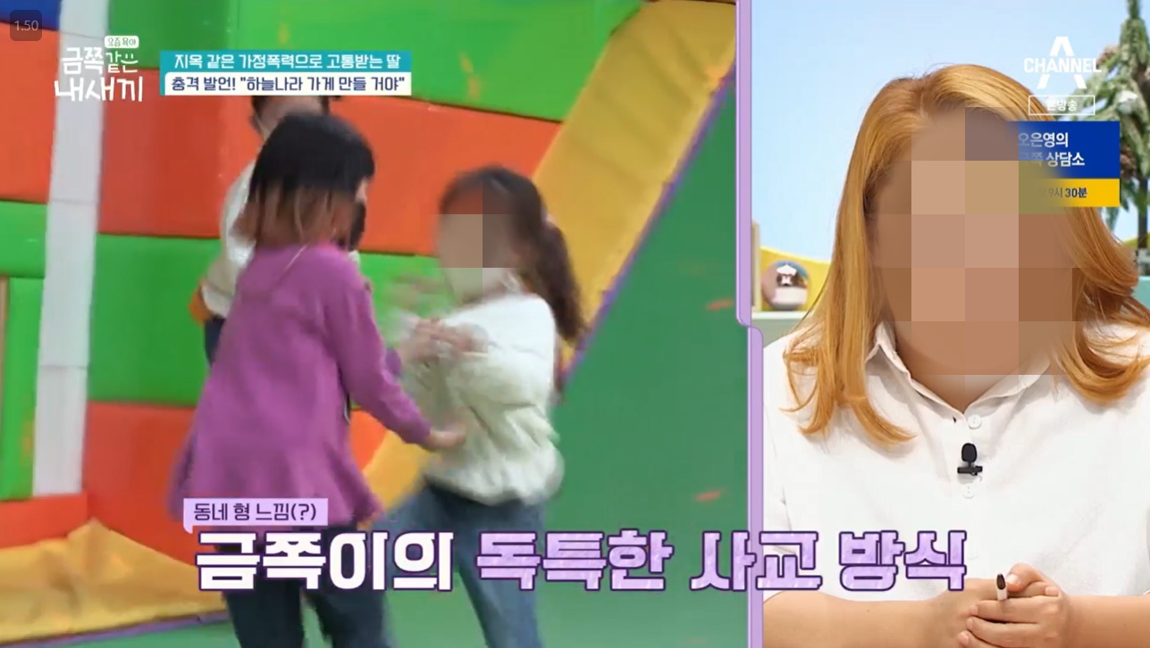 그런데 금쪽이의 행동은 좀 많이 거칠어보였어요. 같이 노는 오빠에게 신발을 던지고 때리고 잡아끌고 하는 모습이 심상치않았죠. 험한 말에 오빠를 이유없이 때리는 금쪽이. 이런 이유로 어린이집을 옮기게 되었나 싶었습니다.