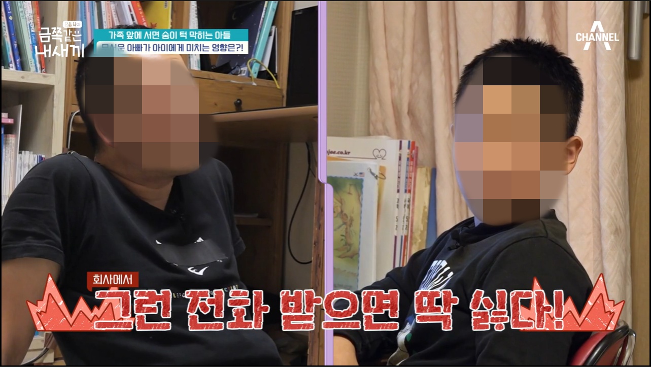 할머니의 숙제 검사가 끝났다 했더니 집에 돌아온 아빠의 검사가 또 시작되었어요. 영어숙제를 실컷 하고 잠시 쉬고 있었는데 수학을 꺼내보냐며 이건 언제할거냐고 추궁하는 모습이었죠. 아빠의 속사포 추궁에 금쪽이는 아무 말도 하지 못했습니다. 금쪽이의 표정은 너무나도 얼어붙은 것 같았습니다.