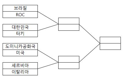 우리나라가 터키를 이기면, 즉 우리나라가 준결승에 진출한다면 브라질과 ROC 중 승리 국가와 준결승전에서 맞붙게 됩니다.
