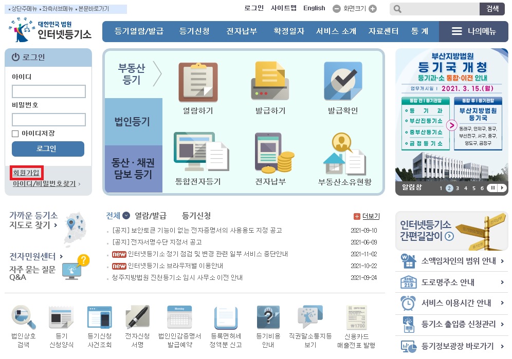 인터넷등기소를 이용하실 때에는 회원가입을 하고 이용하시는 것이 편하실거에요. 비회원으로도 열람이 가능하니, 가입을 원하지 않으시는 분들은 회원가입 없이 진행하셔도 되지만, 제가 여러번 등기를 발급받고 조회해보고 한 경험상으로는 회원가입을 하고 사용하는 것이 편리하더라구요.
