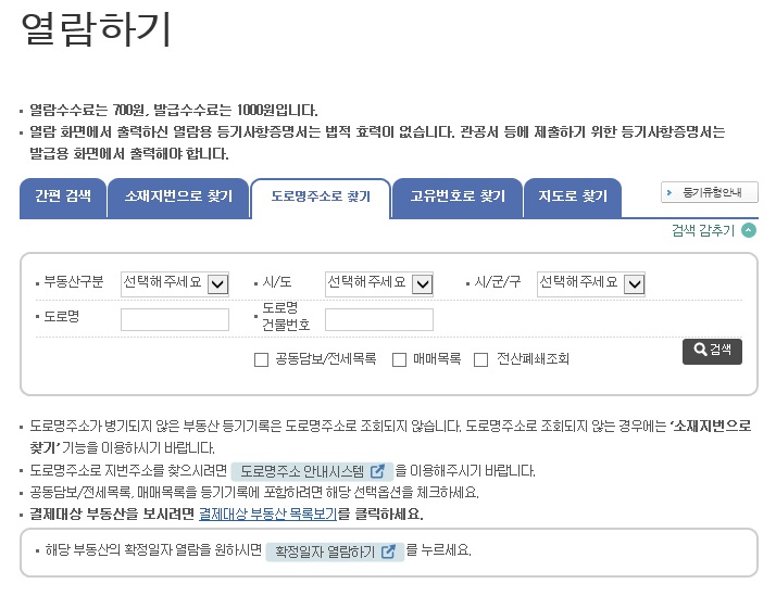 이 글에서는 열람하기를 진행하는 모습을 보여드릴게요. 검색 및 결제까지의 진행과정은 똑같으니 발급을 원하시는 분들도 참고하시면 될 것 같아요.