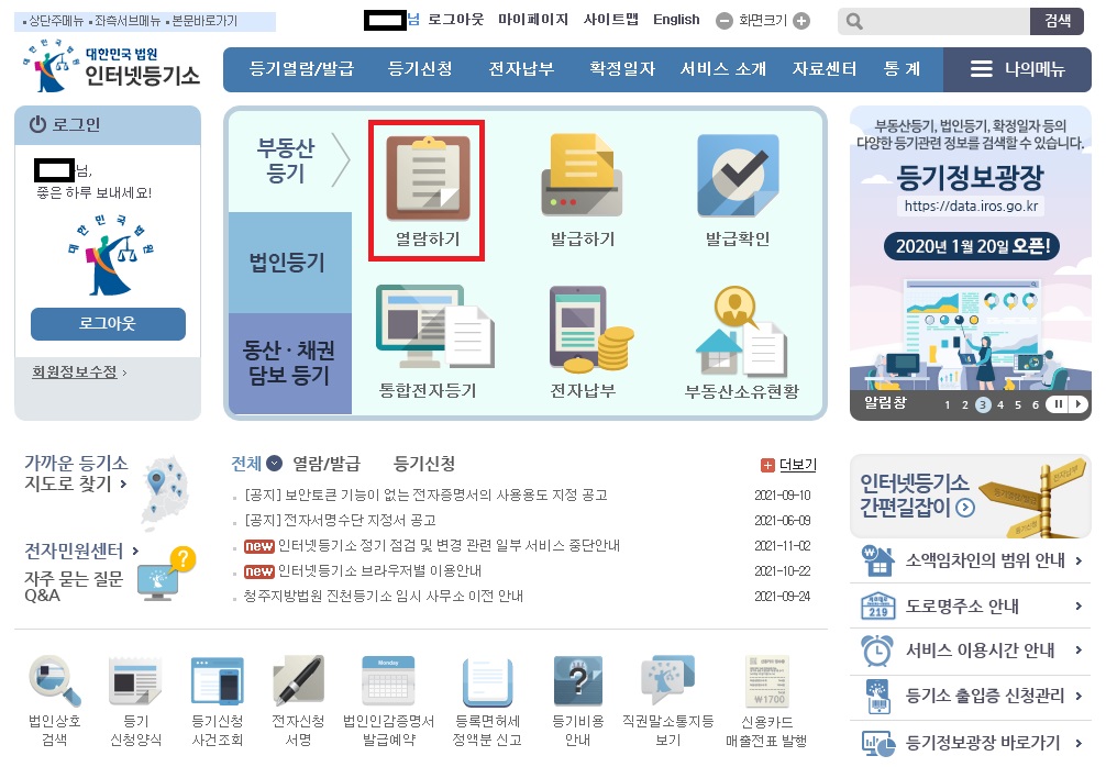 인터넷등기소를 이용하실 때에는 회원가입을 하고 이용하시는 것이 편하실거에요. 비회원으로도 열람이 가능하니, 가입을 원하지 않으시는 분들은 회원가입 없이 진행하셔도 되지만, 제가 여러번 등기를 발급받고 조회해보고 한 경험상으로는 회원가입을 하고 사용하는 것이 편리하더라구요.
