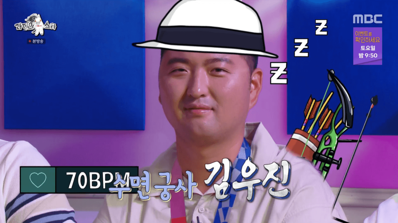 두건 패션으로 아저씨 소리를 들었다는 김우진. 92년생으로 올해 30이라며 아저씨가 아니고 오빠라고 강조했어요. 구본길 선수도 본인보다 3살 어리다는 소리를 듣고 놀라더라구요. 여기에 오진혁 선수는 김우진 선수와 같이 밥을 먹었는데 보통 연장자에게 계산서를 줄텐데 김우진 선수에게 계산서를 줬다며 쐐기를 박았습니다. ㅋㅋ 아무리 그래도 오진혁 선수보다 나이가 들어보이는 것 같지는 않은데 ㅋㅋ
