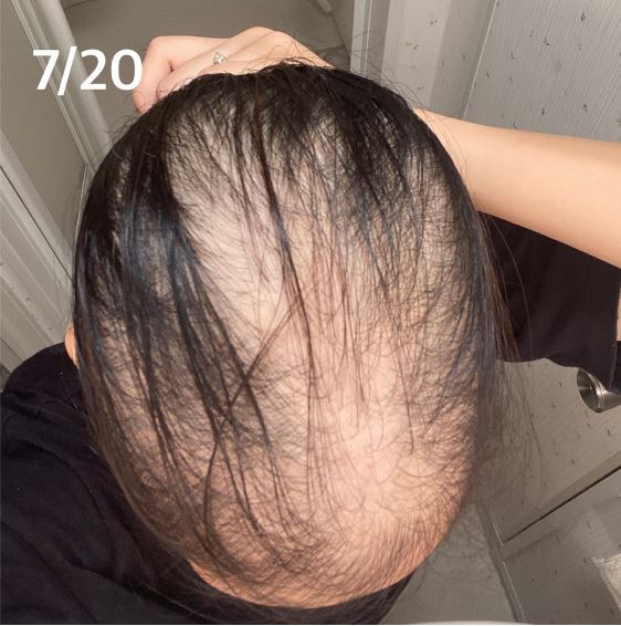 그 이후로도 탈모 증상은 점점 심해졌다고 해요. 처음 병원을 방문했던 것은 7월 7일. 이미 머리의 곳곳에는 동전 크기만한 원형 탈모가 심각한 상황 이었습니다. 그리고 그 때부터 일주일 뒤인 7월 14일에는 그냥 보아도 두피가 그대로 보일 정도로 탈모 상태가 너무나도 심해 졌다고 해요. 7월 31일에는 머리카락의 거의 전부가 빠져버렸고 이제는 거의 대머리에 가까운 상태가 되었다고 합니다. 정말 모더나 맞고 대머리 되어버린 것 이죠.