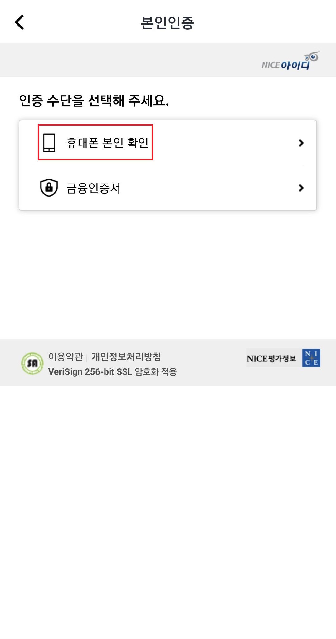 본인인증방법은 두 가지가 있어요. 휴대폰 본인확인 방법과 금융인증서 방법인데요, 편하신 방법을 선택하셔서 본인인증을 진행해주시면 됩니다. 대체적으로는 휴대폰 본인확인 방법이 간단하겠죠. 저도 휴대폰 본인인증으로 진행 해 보았습니다.