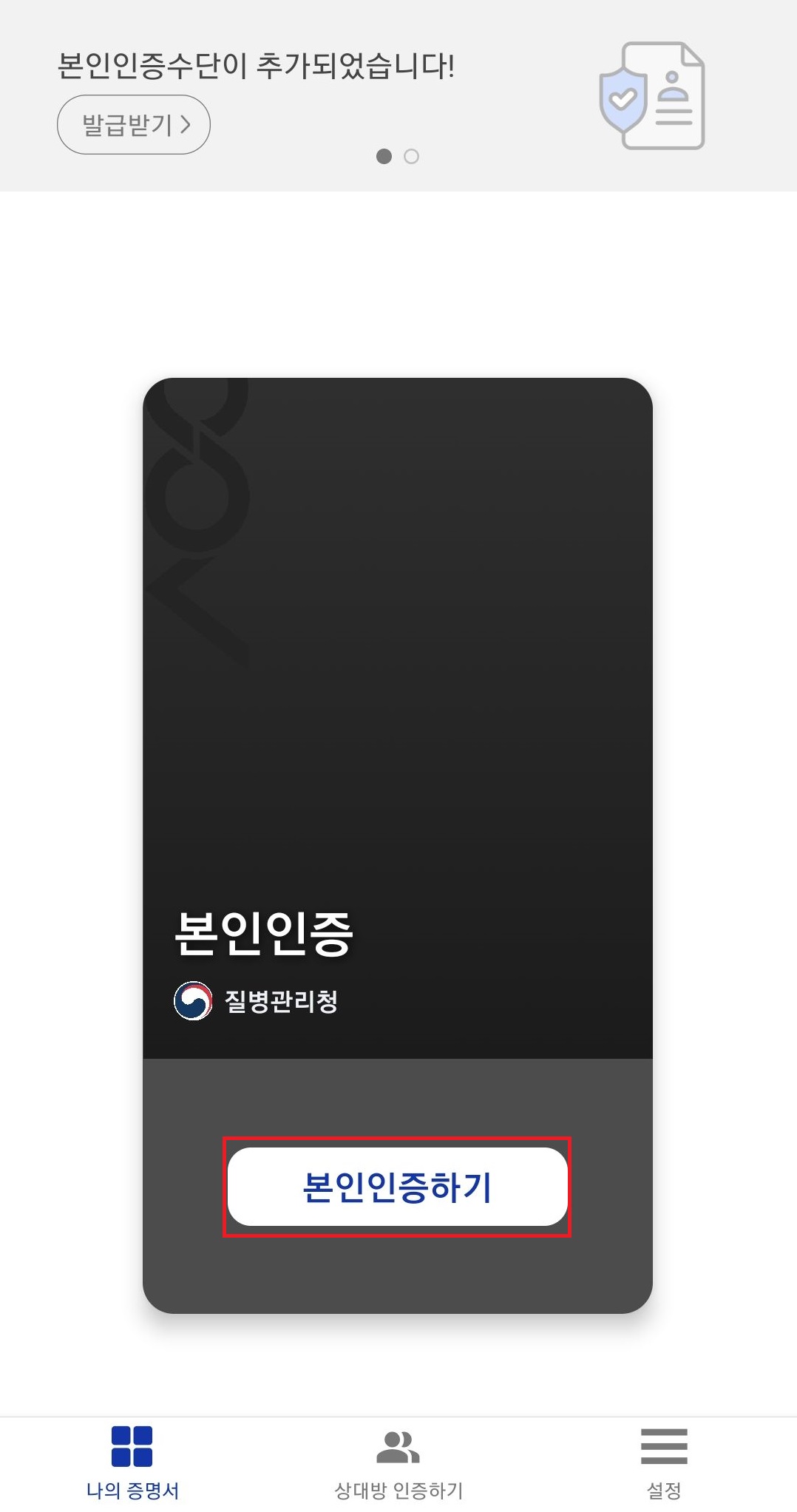 본인인증을 완료하면 이렇게 첫 화면에 본인인증 증명서가 뜨게 됩니다. 그러면 이제 본격적으로 백신접종증명서 발급 진행해볼텐데요, COOV의 첫 화면에 맨 위에 보시면 코로나19 예방접종증명서 발급받기 라고 보이실거에요. 발급받기 버튼을 누르시면 질병관리청에 성명과 생년월일 정보를 보낸다는 내용이 나옵니다. 제출하기 버튼을 누르시면 백신접종증명서 발급 끝. 너무 간단하죠.