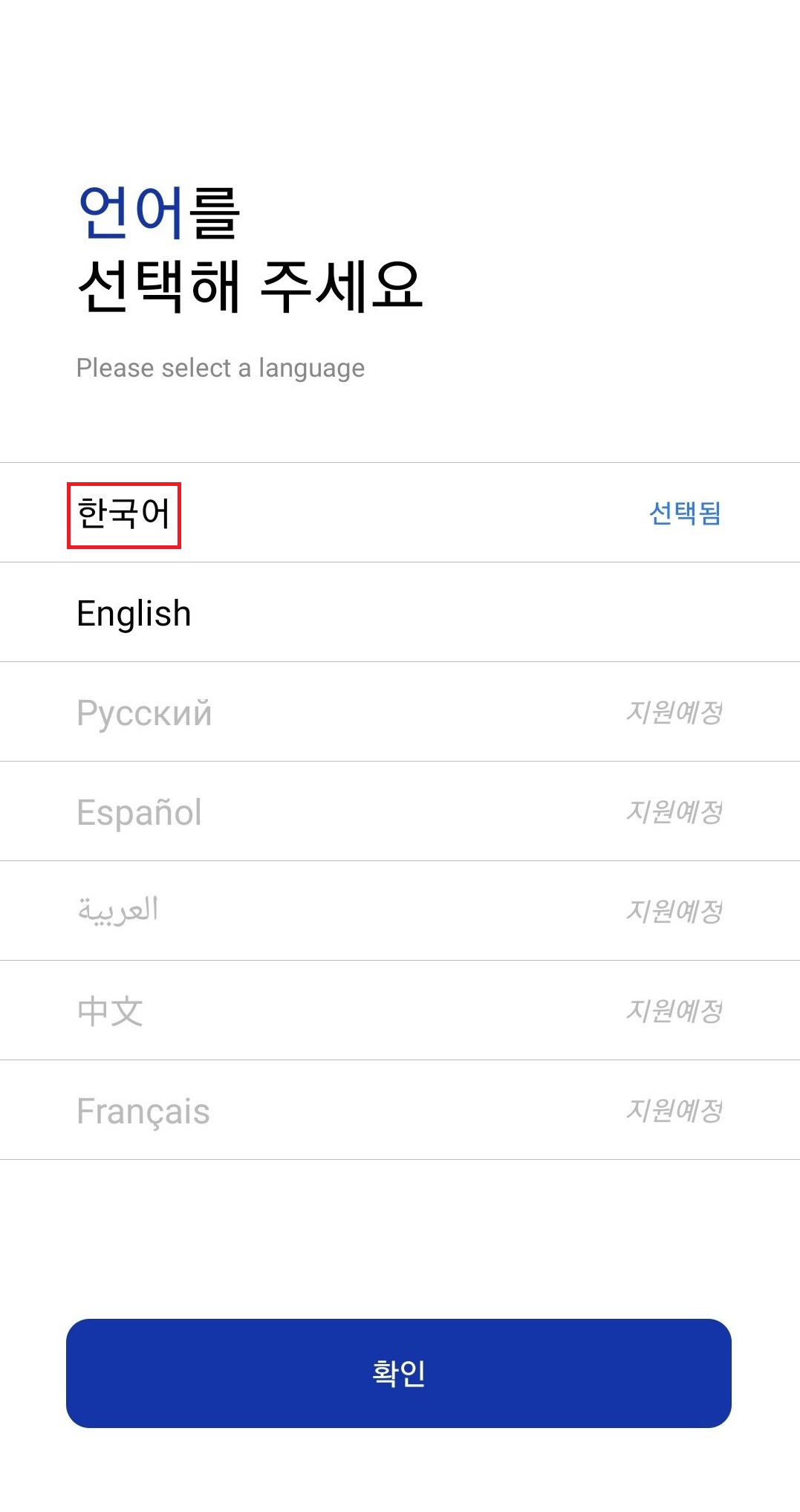 먼저 언어와 국가 및 지역을 선택하는 화면이 나오게 될거에요. 기본 선택으로 한국어, 대한민국이 이미 선택되어 있을테니 확인 버튼을 누르시면 됩니다. 혹시 다른 언어나 다른 국가의 선택이 필요하시면 리스트에서 찾아서 선택하시면 됩니다.