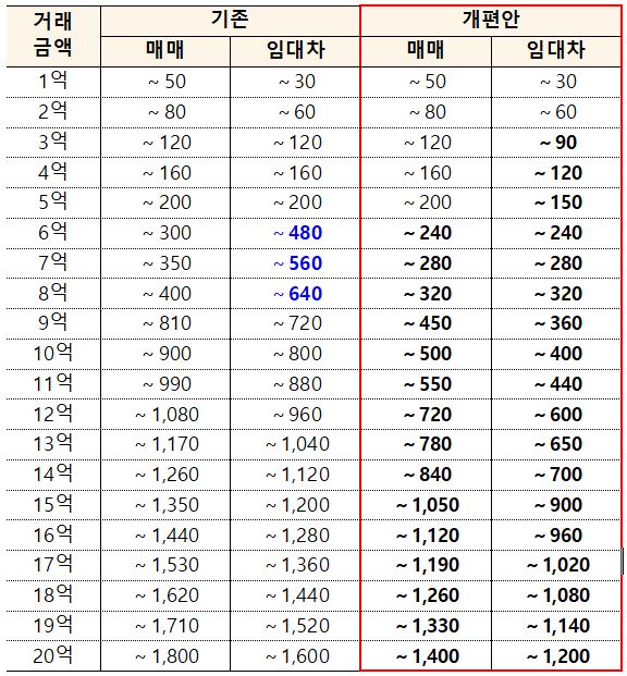 부동산 중개수수료를 개편하게 된 배경은 집값이 크게 상승하면서 부동산 중개 서비스의 내용 및 질에 대비해서 부동산에 지불하는 금액이 너무 높다는 불만에서 시작 되었습니다. 또한 6~9억의 거래 구간에서는 임대차 중개수수료가 매매 중개수수료보다 비싼 역전 현상이 있었던 것에 대한 보완 요구 역시 지속적으로 있어왔죠.