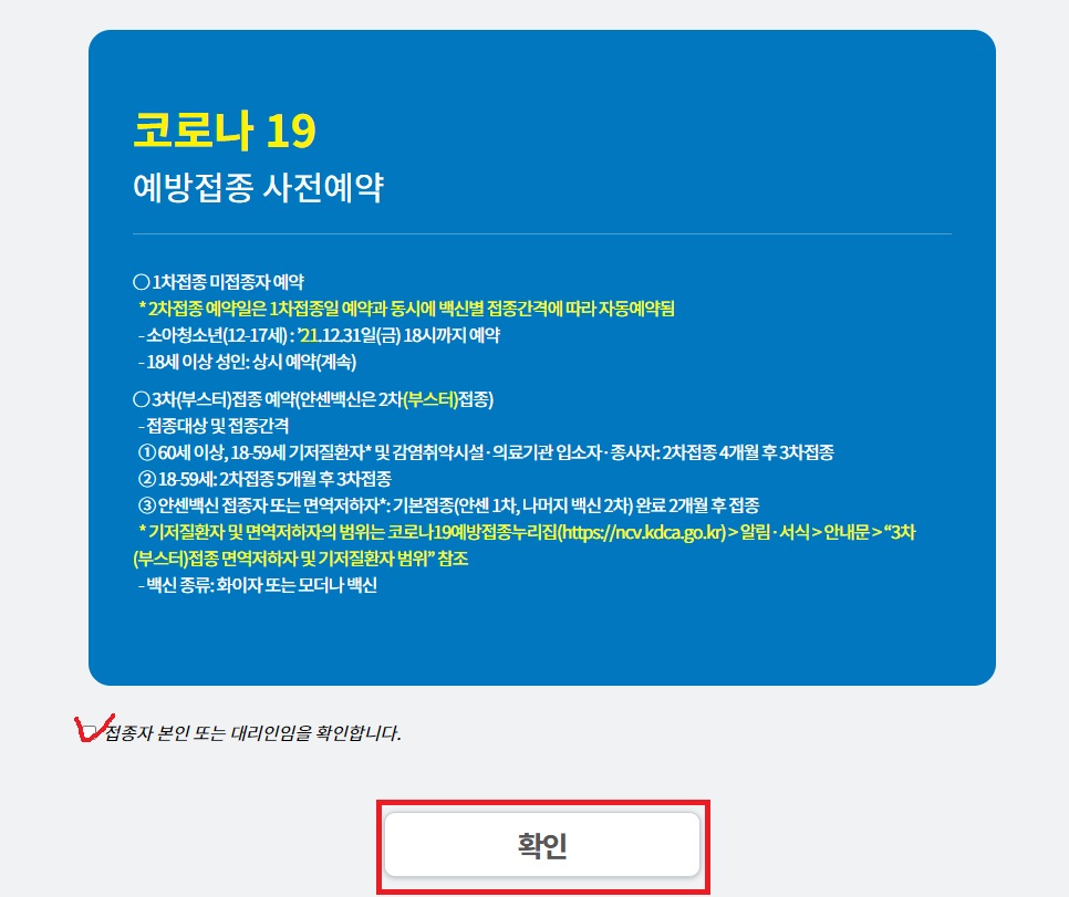 - 소아청소년(12~17세) : ~2021년 12월 31일 금요일 6시까지 예약 진행