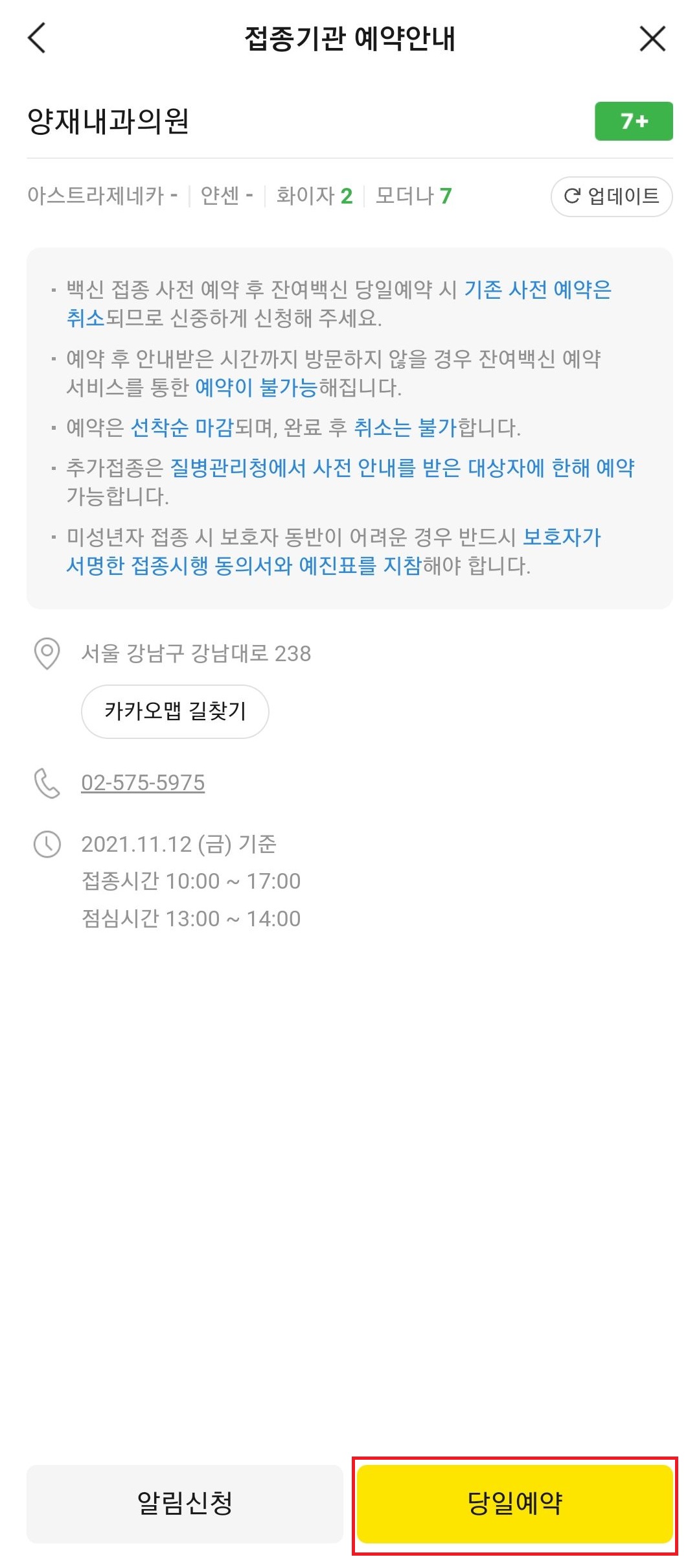 어제까지만 해도 부스터샷 접종 예약은 카카오톡이나 네이버를 이용한 잔여백신 당일예약이 불가능했어요. 코로나 백신 예약 홈페이지를 통해 사전예약을 한 뒤 접종을 진행하거나, 의료기관에 직접 전화를 걸어 예약을 한 뒤 접종을 받는 방식으로 진행이 되었었는데요, 11월 12일부터는 기존의 잔여백신 예약과 동일하게 카카오톡과 네이버를 통한 당일예약이 가능해졌습니다.