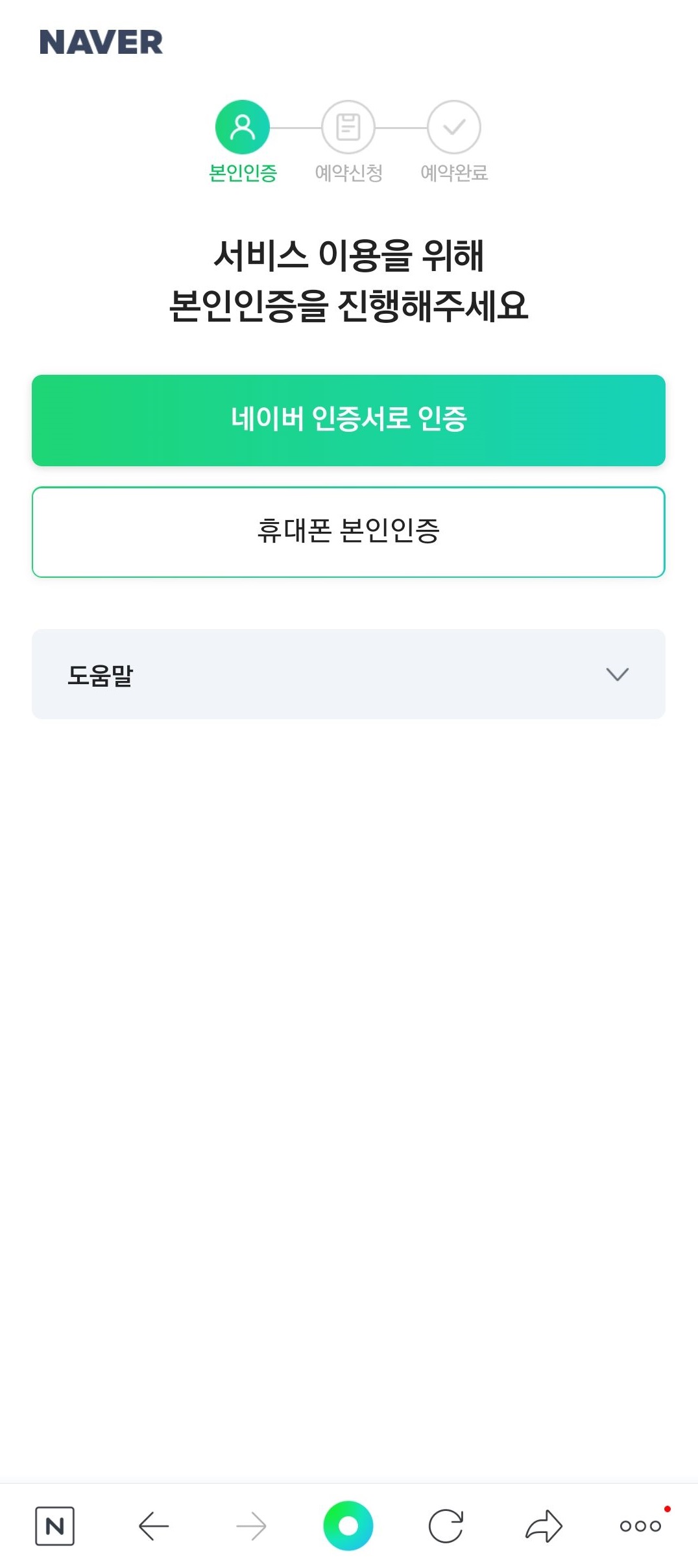 개인적으로 카카오에 비해 네이버가 불편한 점은 본인인증 과정이 필요하고 네이버 인증서가 있어야 잔여백신 예약이 가능하다는 점이에요. 본인인증 및 네이버인증서 발급 후 진행 해 주시면 됩니다.