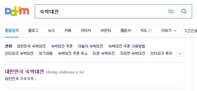 먼저 포털 사이트에 숙박대전 이라고 검색을 하시면 제일 상단에 대한민국 숙박대전이라고 뜨는 사이트가 있을거에요. 해당 사이트에 접속 해 주세요.