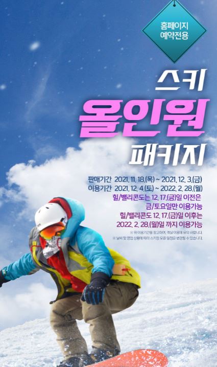 2021 휘닉스 파크 스키장 개장일 : 12월 3일