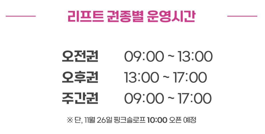 이번에 하이원에 새로 생긴 것은 시간제 리프트권 인데요, 그동안 오전, 오후, 주간 등의 리프트권만 운영을 했었는데 자유롭게 본인이 시간을 선택해 이용하는 리프트권입니다. 이로써 고객 편의 증진 및 리프트 탑승 분산이 가능해질 예정이에요.