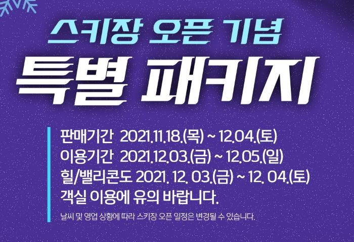 2021 휘닉스 파크 스키장 개장일 : 12월 3일